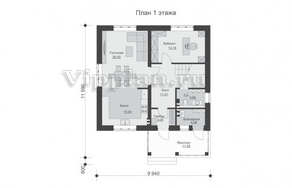 | Размеры дома: | 9.94м×11.59м |