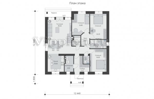 | Размеры дома: | 14.14м×12.44м |