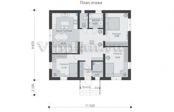 | Размеры дома: | 11.07м×11.52м |