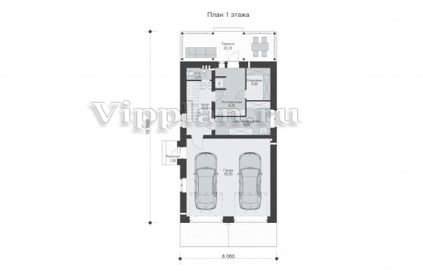 | Размеры дома: | 8.06м×15.96м |